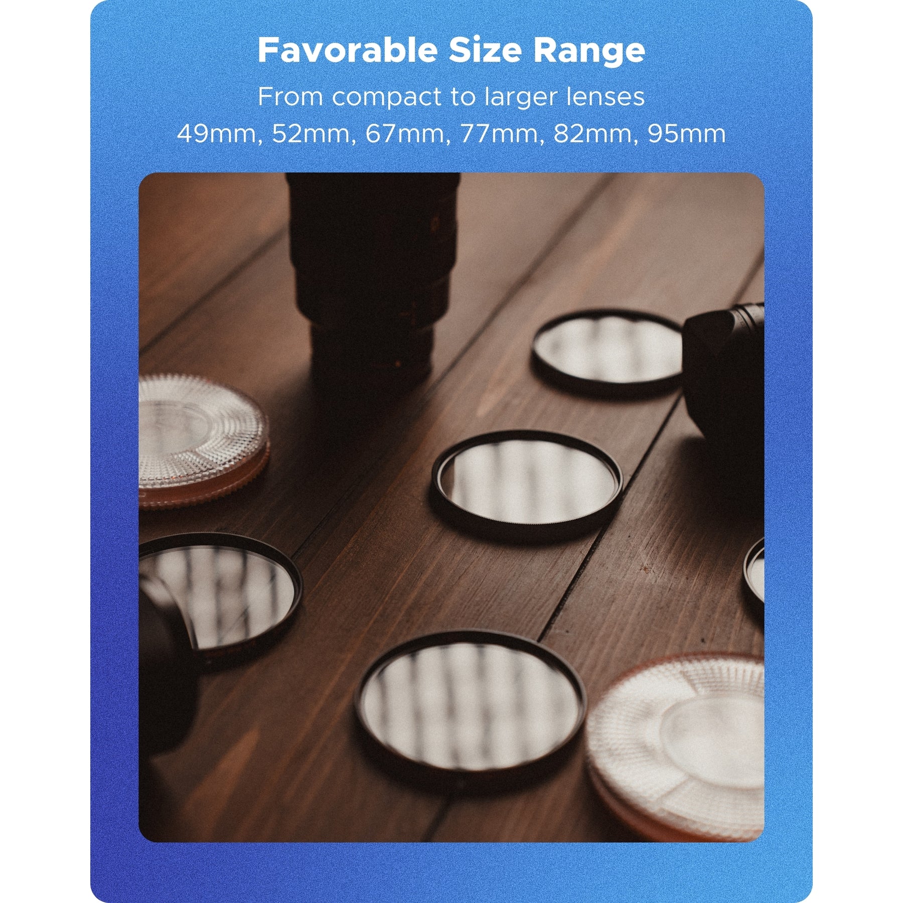Available in 49mm, 52mm, 67mm, 77mm, 82mm, and 95mm sizes, the Clear Mist 1/4 supports a wide range of lenses, from compact mirrorless systems to large cinema glass.
