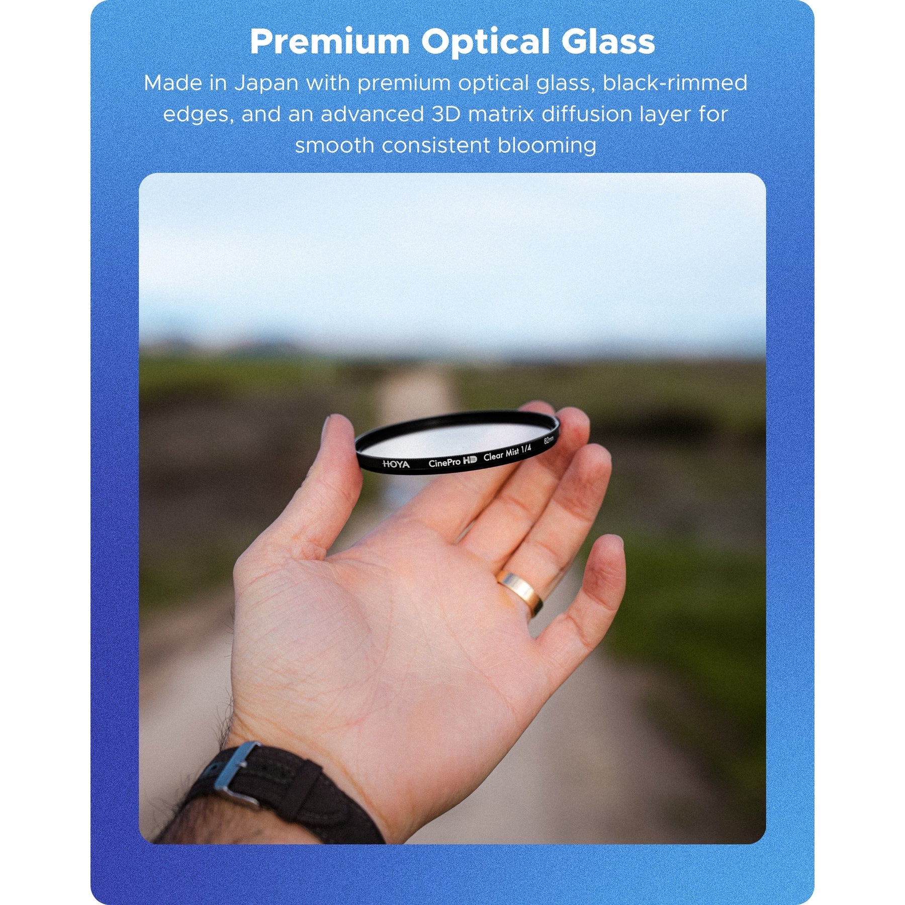 Each filter is made in Japan using premium optical glass, featuring black-rimmed edges and an advanced 3D matrix diffusion layer to ensure smooth, consistent blooming. Every filter is computer-controlled and precision-polished for excellent optical clarity and reliable performance.
