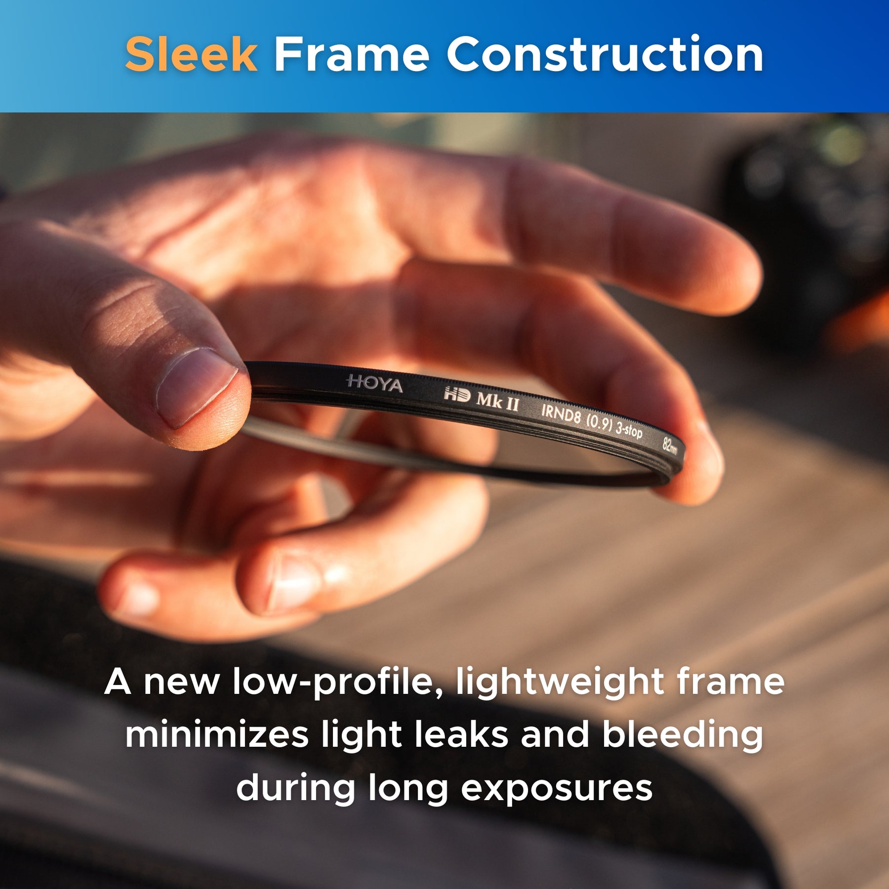 The filter is mounted into a new low-profile, lightweight, precision-milled aluminum frame. The new frame takes extra care to prevent light leaks and bleeding around the filter that can occur during long exposures. It includes front filter threads so you can attach additional filters or a protective lens cap.